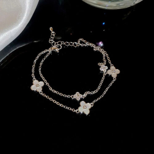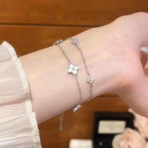 ắc tay 2 dây CỎ 4 lá may mắn xà cừ xi BẠC 925 cao cấp, lắc tay nữ thiết kế đẹp, Quà tặng độc đáo B3611 số lượng