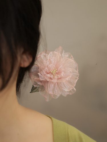 Kẹp tóc Hoa hồng Nơ Voan xanh AK2481