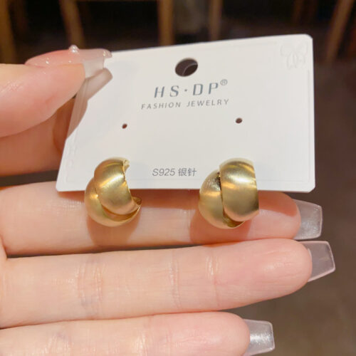 Bông tai chải kim loại xi vàng pha cao cấp, thiết kế sang trọng basic hợp xu hướng B3489