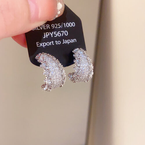 Bông tai chữ C đính đá zircon cao cấp xi bạc 925, Bông tai đi tiệc đơn giản, sang trọng cao cấp B3245