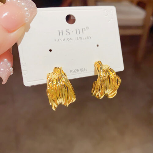 Bông tai chữ C màu VÀNG cao cấp, Bông tai thời trang sang trọng, thiết kế độc đáo B3111