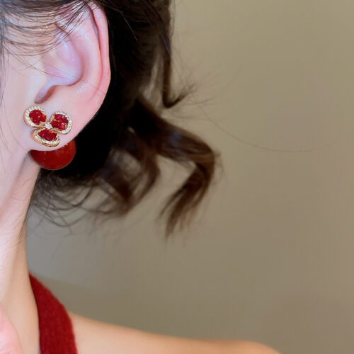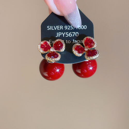 Bông tai nữ giọt ngọc đỏ sắc xuân xi vàng pha, thiết kế Đẹp độc đáo, cao cấp, sang trọng B1341