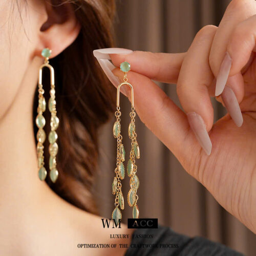 Bông tai dáng dài đá xanh thiết kế Hàn Quốc cao cấp sang trọng B2963