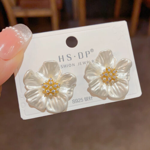 Bông tai đính ngọc trai Hoa trà trắng thanh lịch, sang trọng, thiết kế Hàn quốc độc đáo B3061 số lượng