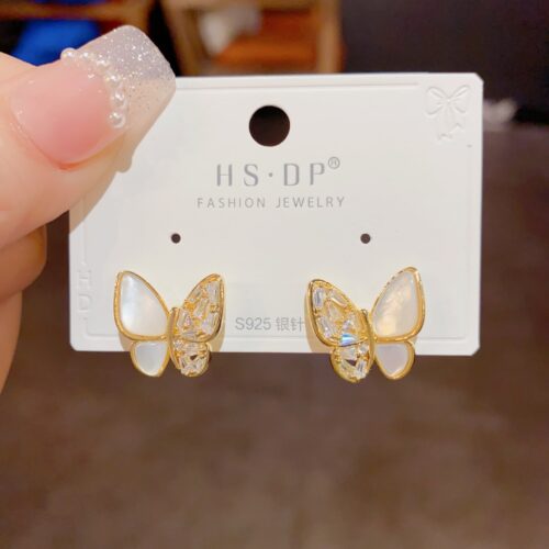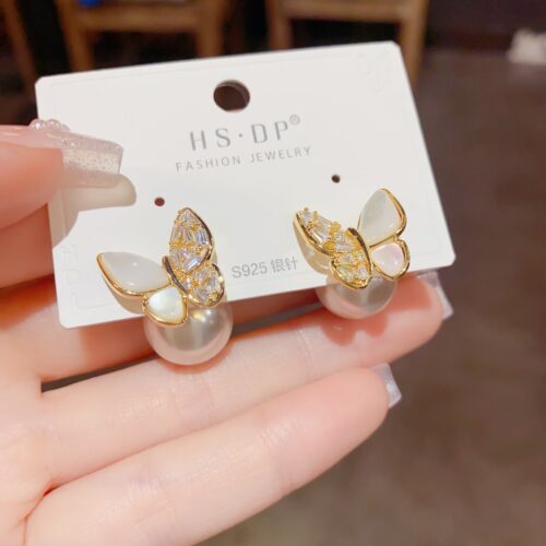 Bông tai HỒ ĐIỆP NGỌC sau mix 2 kiểu xà cừ xi vàng pha cao cấp đính đá zircon độc đáo B2709
