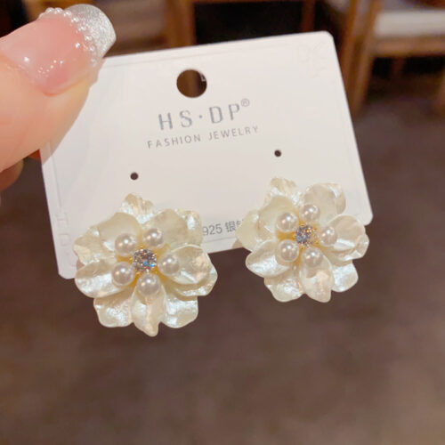 Bông tai thiết kế HÀN QUỐC cô dâu sang trọng, phong cách nhẹ nhàng hoa vải B3116