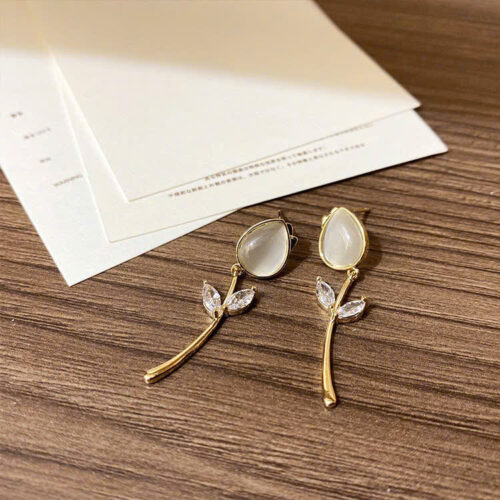 Bông tai HOA TULIP Chất đá zircon cao cấp B02128