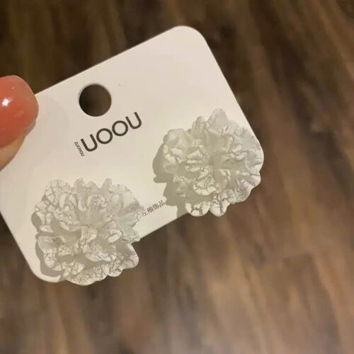 Bông tai HOA vân TRẮNG KEM, bông tai cô dâu, hoa tai thời trang hoa đi tiệc, bông tai mang áo dài B4851