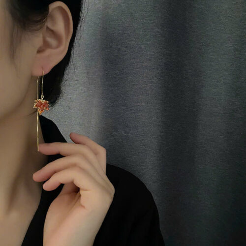 Bông tai LÁ PHONG ĐỎ dài thanh mảnh nhẹ nhàng độc đáo cao cấp B03566