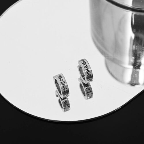 5. Bông tai NAM NỮ basic unisex màu bạc khắc kí hiệu tròn basic 0.9cm B4396