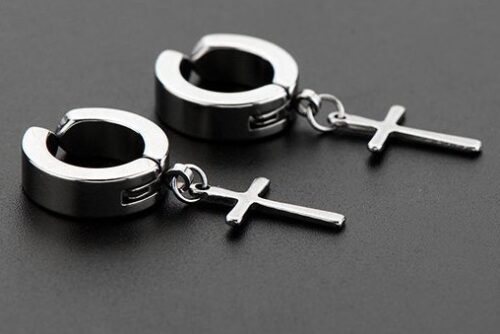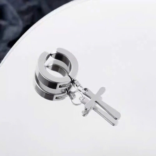 Bông tai NAM Nữ unisex chữ Thập, kẹp tai không cần xỏ hình thánh giá, phụ kiện bông tai cá tính phong cách B4390
