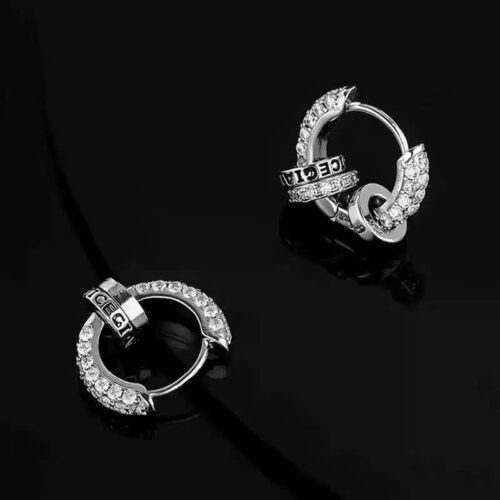 • Bông tai NAM nữ, unisex đính đá zircon cao cấp (2 vòng) tròn ngôi sao ÂU MĨ, phụ kiện bông tai cao cấp đơn giản basic B4401