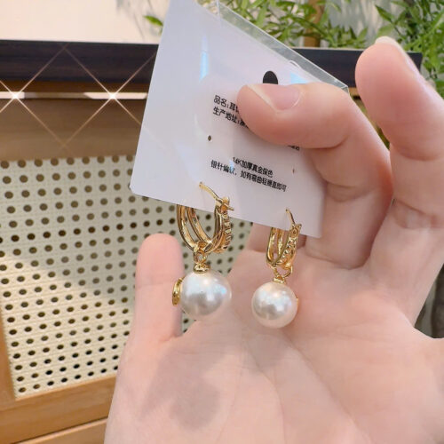 Bông tai đính đá zircon ngọc trai cao cấp B3089