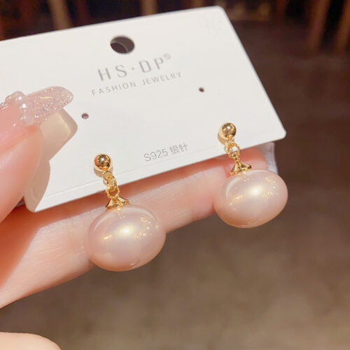 Bông tai ngọc trai hình bầu dục màu VÀNG HỒNG xi vàng pha cao cấp, thiết kế sang trọng B3076