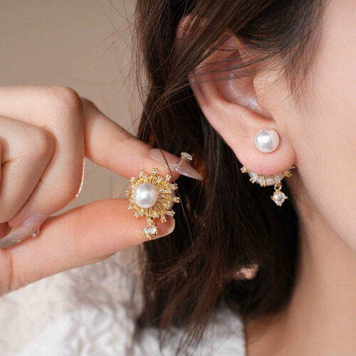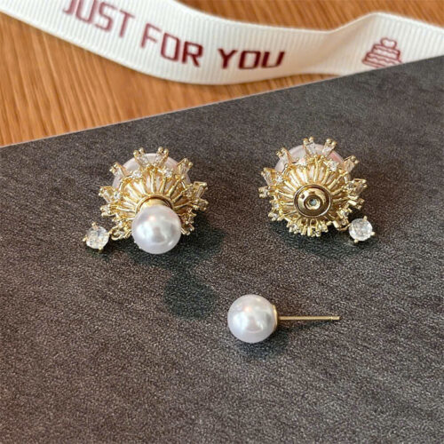 Bông tai đính đá zircon ngọc trai cao cấp B3089