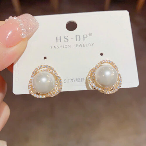 Bông tai đính đá zircon ngọc trai cao cấp B3089