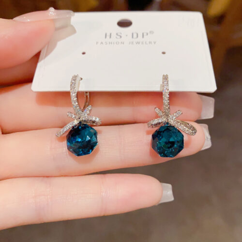 Bông tai NƠ ĐÁ zircon giọt đá xanh DƯƠNG cao cấp , phong cách hàn quốc sang trọng B3105