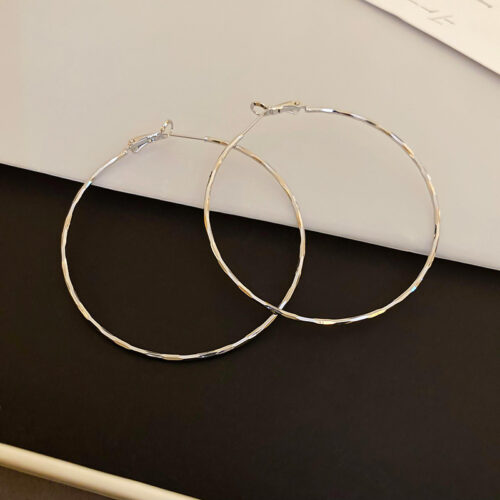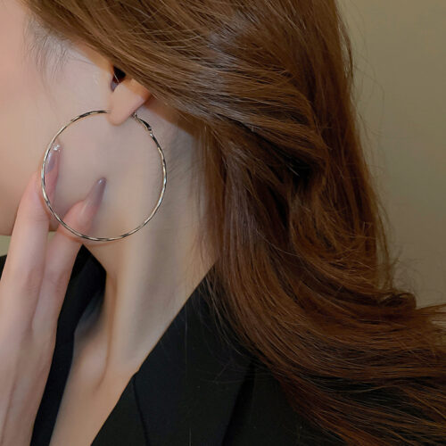 5. Bông tai tròn TRƠN màu BẠC 6.9cm, phụ kiện bông tai khuyên tròn cá tính sang trọng B3564