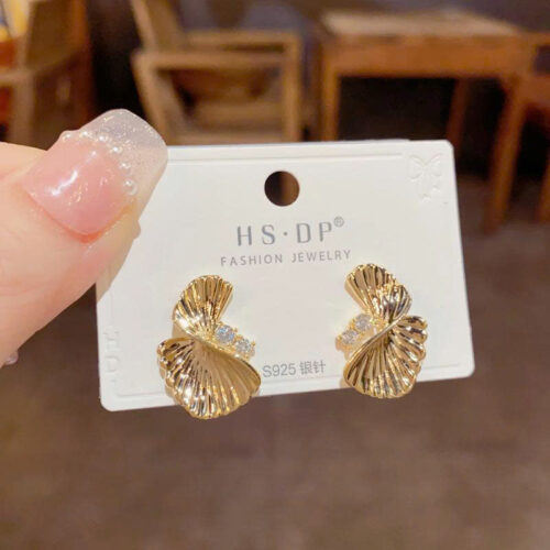 Bông tai XOẮN kiểu cánh quạt 2 bên xi vàng pha cao cấp, Hoa tai thời trang thiết kế Hàn Quốc độc đáo, sang trọng B4508