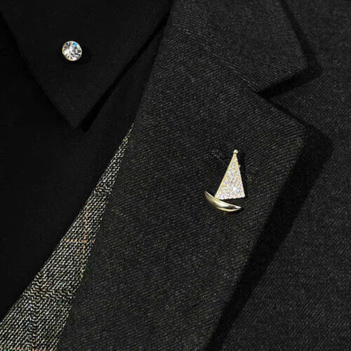 Cài áo Thuyền BUỒM đính đá xi màu vàng AC05606