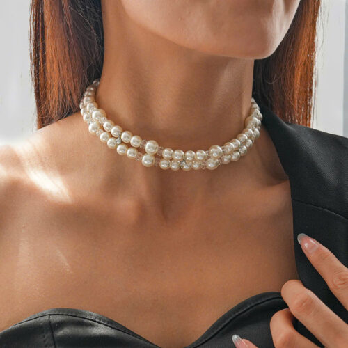 Chocker ngọc trai 2 vòng, vòng cổ chocker ngọc, phụ kiện vòng cổ đi tiệc B03169 số lượng