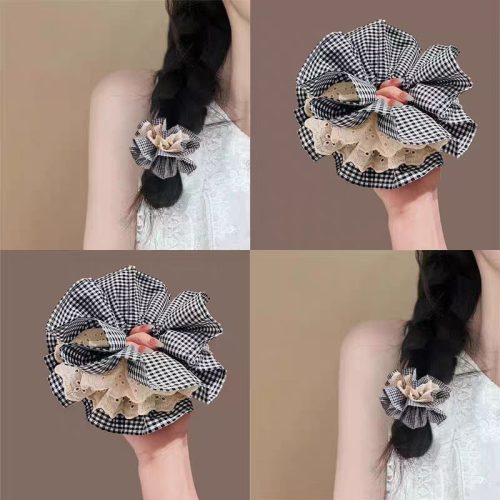 Cột tóc caro mix ren độc đáo thiết kế hàn quốc cao cấp, phụ kiện cột tóc nữ đẹp B2190 số lượng