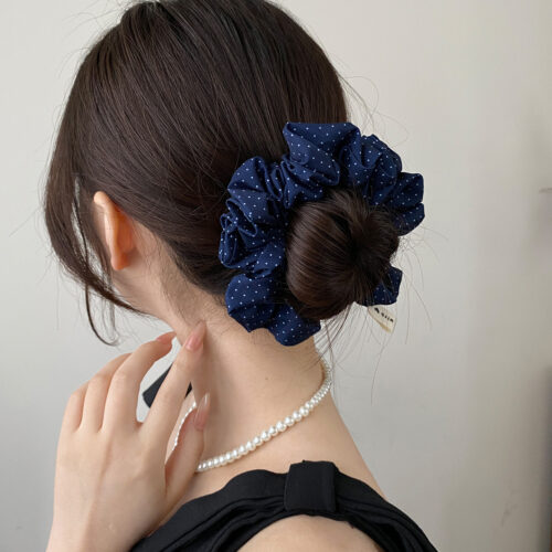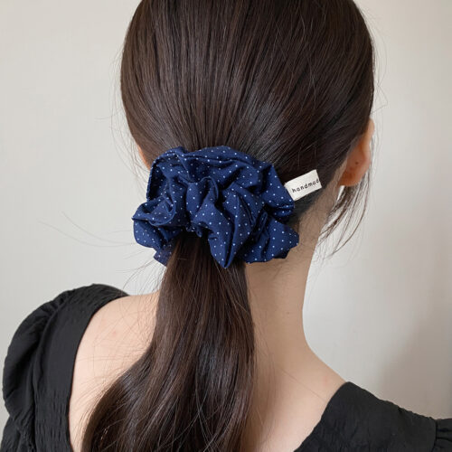 Cột tóc chấm xi XANH ĐEN, phụ kiện cột tóc nữ đẹp độc đáo thun cao cấp B3428