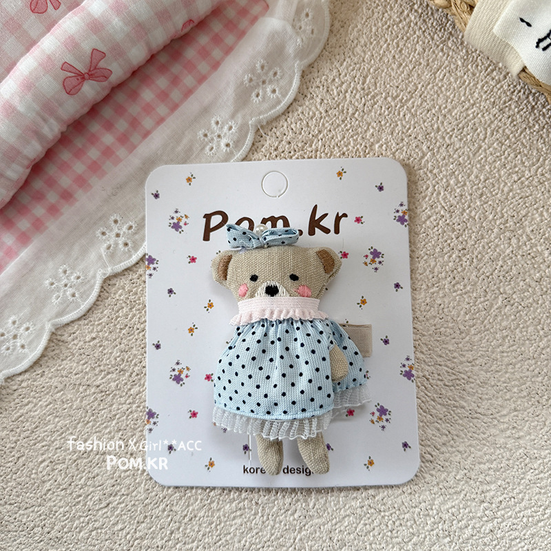 KẸP tóc cho bé SIÊU DỄ thương ĐẦM GẤU CHẤM BI XANH cao cấp, quà tặng cho bé độc đáo B4686