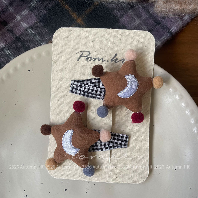 Sét 2 kẹp bấm cho bé dễ thương NGÔI SAO 5 cánh màu NÂU quả bông cao cấp thiết kế dễ thương, quà tặng đáng yêu cho bé B4711