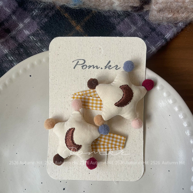 Sét 2 kẹp bấm cho bé dễ thương NGÔI SAO mặt trăng màu KEM quả cầu cao cấp thiết kế dễ thương, quà tặng đáng yêu cho bé B4713