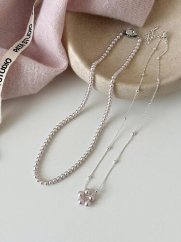 Dây chuyền 2 dây rời ngọc hồng, mặt ngọc Hoa dáng tầng độc đáo ,phụ kiện vòng cổ đẹp B4079 số lượng