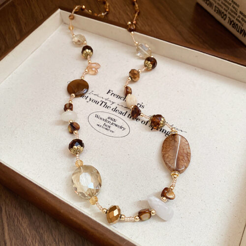 Dây chuyền cườm đá cẩm thạch NÂU cao cấp, phụ kiện dây chuyền đi biển, phong cách dây chuyền boho B4097