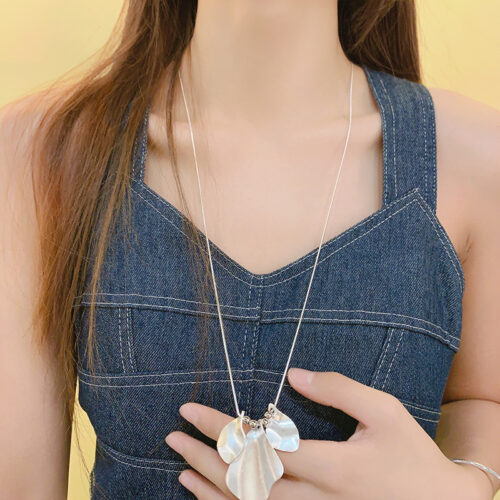 Dây chuyền dài mảnh màu BẠC cánh hoa không đều, phụ kiện vòng cổ thời trang độc đáo B3165