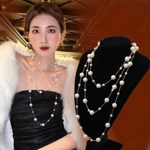 5. Dây chuyền dài ngọc lớn nhỏ mix 2 tầng hoặc 3 tầng với A0016