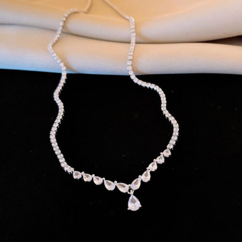 5. Dây chuyền GIỌT NƯỚC ĐÁ zircon xi bạc 925 cao cấp, phụ kiện dây chuyền cô dâu, dây chuyền đi tiệc B4113