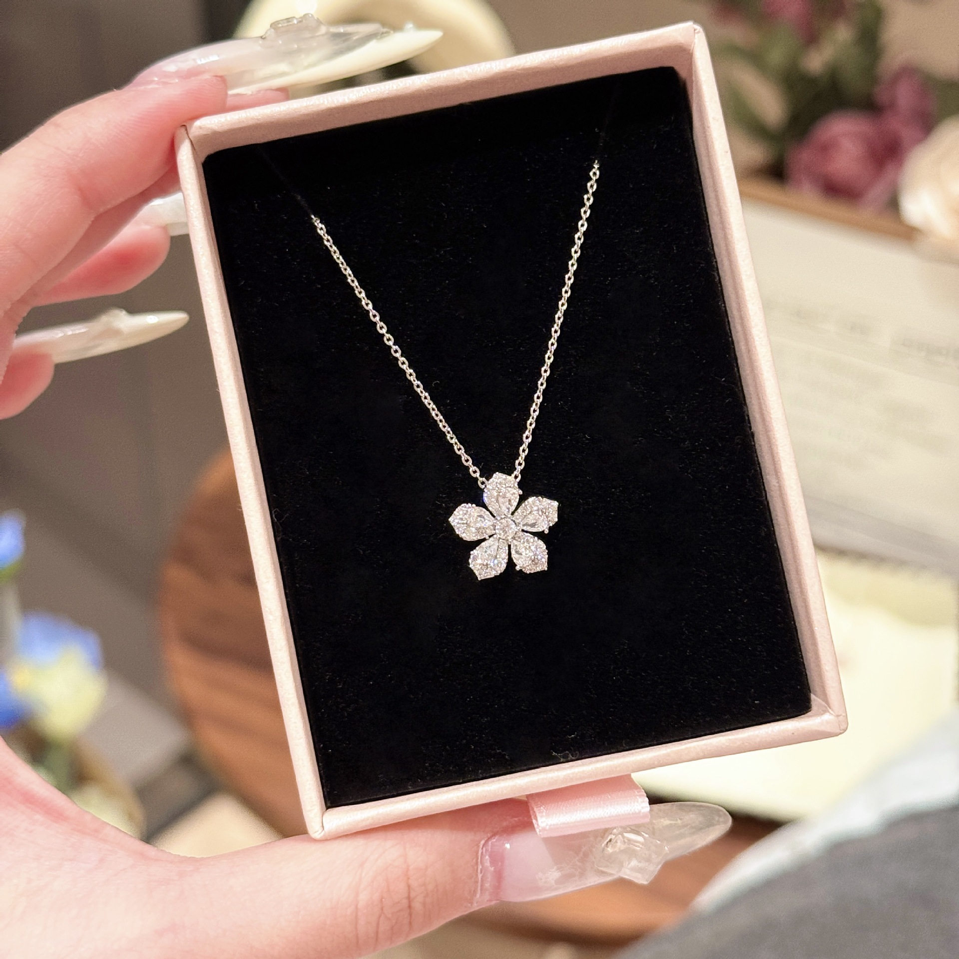 Dây chuyền HOA 5 cánh đá zircon xi bạc 925 cao cấp, quà tặng bạn gái độc đáo, phụ kiện dây chuyền đi tiệc B3715
