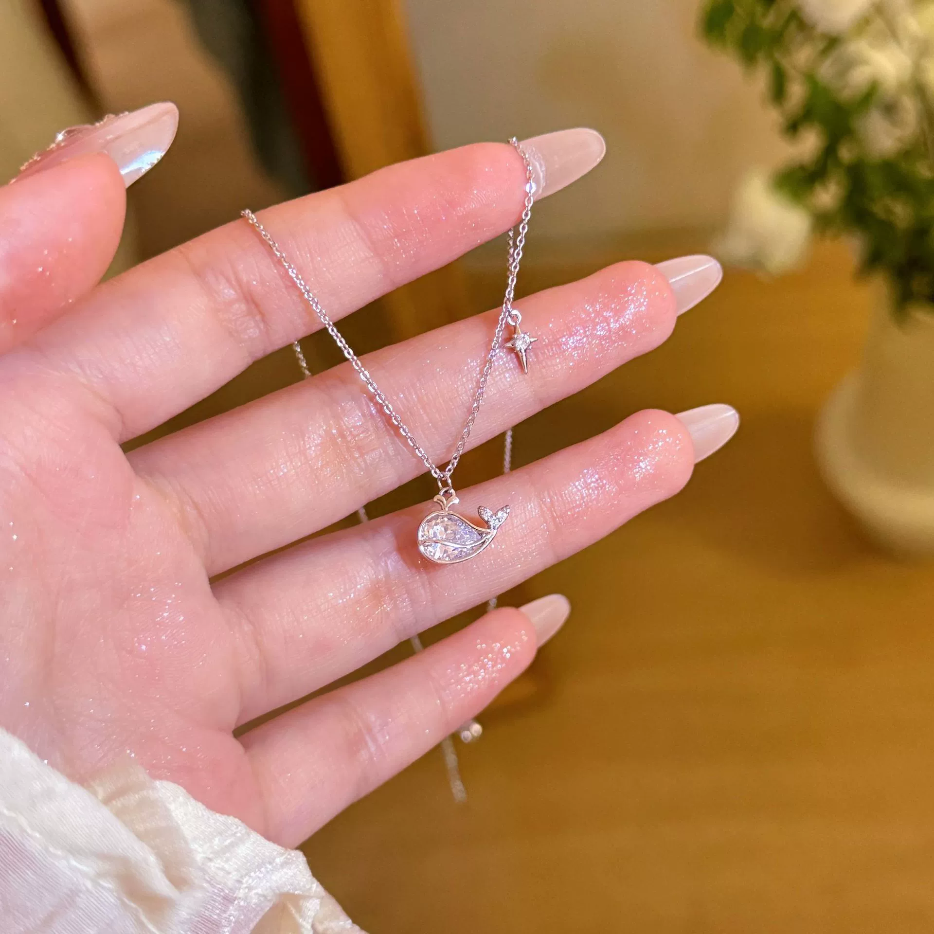 Dây chuyền CÁ VOI zircon xi bạc 925 cao cấp, quà tặng bạn gái độc đáo, phụ kiện dây chuyền đi tiệc B3711