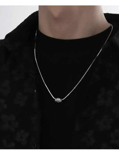 Dây chuyền nam nữ, unisex basic đơn giản cá tính, dây titan mặt 1 mặt vuông đơn giản B4369