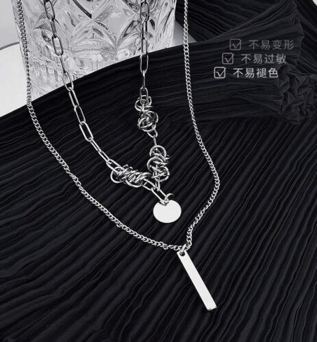 Dây chuyền nam nữ, unisex phong cách basic cá tính, titan 2 tầng độc đáo màu bạc B4370 số lượng