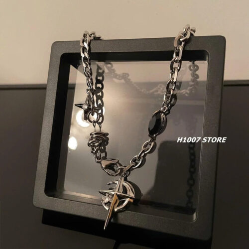 Dây chuyền NAM NỮ unisex titan 2 tầng ngôi sao giọt nước màu bạc, phụ kiện dây chuyền phong cách cá tính B4384