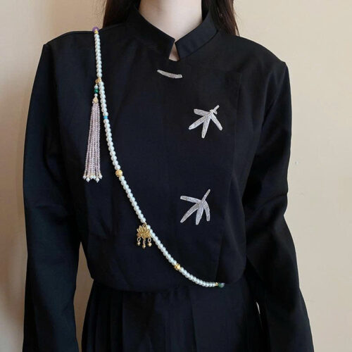 Dây chuyền ngọc trai DÀI HOA SEN xi vàng pha cao cấp mix pha lê, dây chuyền ngọc trai đồ lam, dây chuyền dáng dài áo dài B4748