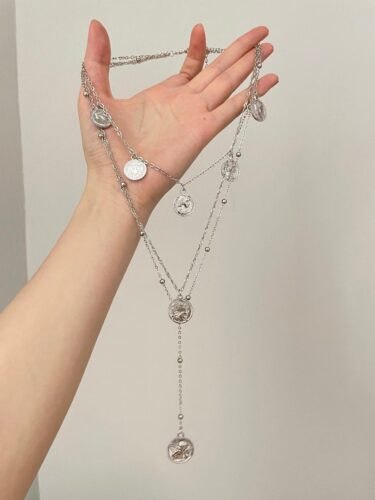 Dây chuyền nhiều tầng MẶT hình tròn màu BẠC, phụ kiện dây chuyền độc đáo cá tính B4082