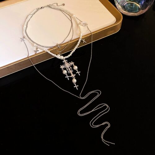 Dây chuyền tầng thánh giá đính đá nhiều tầng thời trang độc đáo cá tính B13169