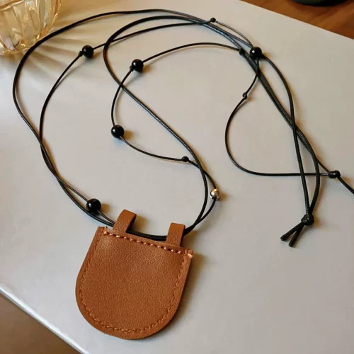 Dây chuyền túi mini nâu da, vòng cổ thời trang độc đáo B1795