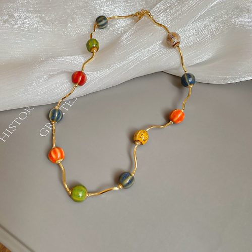 Dây chuyền, vòng cổ hạt gốm nhiều màu sắc, phong cách độc đáo ngày hè B2455