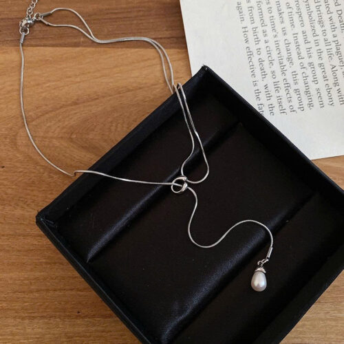 • Dây chuyyền chữ Y điều chỉnh giọt nước ngọc trai màu BẠC, phụ kiện vòng cổ đơn giản cá tính, Dây chuyền độc đáo đi tiệc nhẹ nhàng B4729