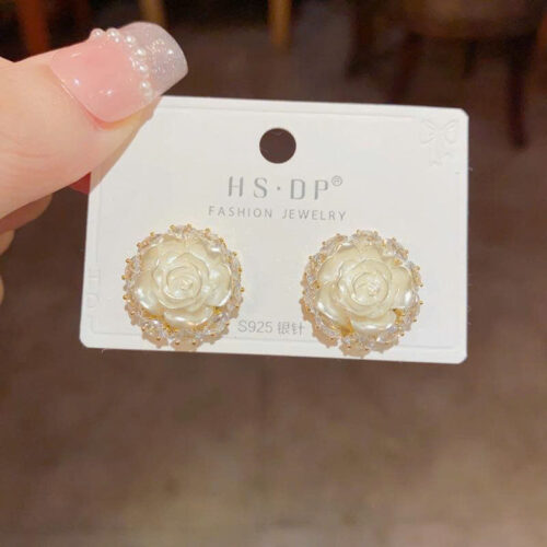 Hoa tai HOA HỒNG viền đá zircon cao cấp, Hoa tai sát tai, bông tai thiết kế Hàn Quốc độc đáo B4514