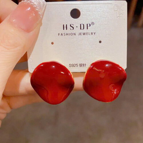Hoa tai SÓNG ĐỎ viền xi vàng pha cao cấp, Hoa tai to trơn basic màu sắc Châu âu phong cách thiết kế Sang trọng B4420