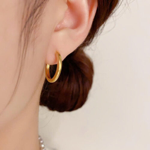 Bông tai BAsic xi VÀNG PHA cao cấp TRÒN xoắn, hoa tai thiết kế Hàn Quốc phong cách Châu Âu độc đáo sang trọng cá tính B4499