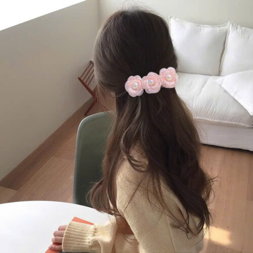Kẹp bấm tóc hoa HỒNG nhuỵ NGỌC thiết kế tiểu thư xinh đẹp B1564 số lượng